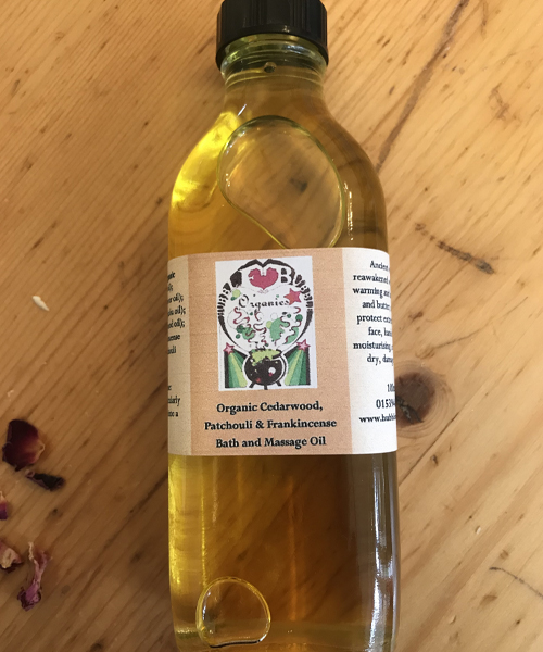 Olea Europa (olive oil ) Heleanthus annuss (sunflower oil ) Jojoba oil(Simmondria sinensis) Cedrus atlanticus (cedarwood atlas oil) Boswellia serrata ( frankinsence oil) Pogostemon patchouli ( patchouli oil) Limonene(a chemical within essential oil)