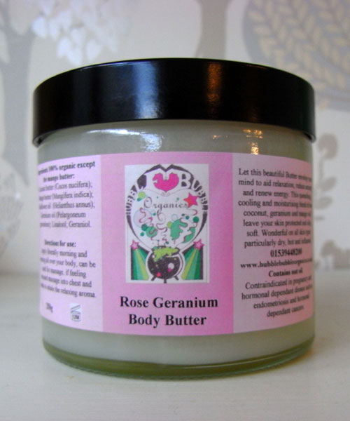 Cocus nucifera (Coconut Butter), Mangifera indica (Mango Butter), Helianthus annus (Sunflower oil), Pelergonium graveolens (Rose Geranium oil), Linalool, Geraniol
